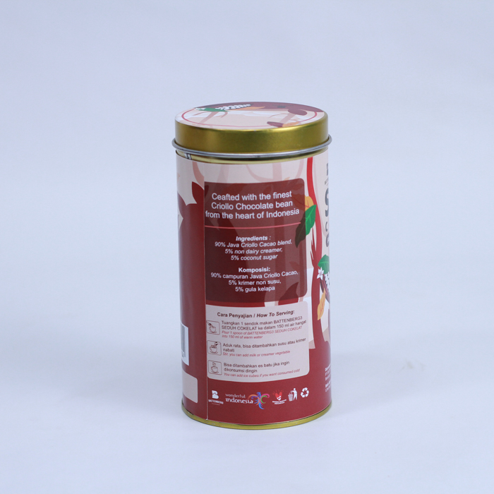 Kandungan Bahan: 90% Java Criollo Coklat blend, 5% gula kelapa 5% krimer nabati