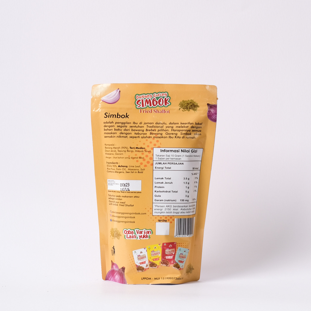 Kami adalah UMKM CV Simbok Berkah Mandiri, yang memproduksi bawang goreng dengan merk Simbok, yang di olah menggunakan bahan baku dari Petani. Bawang Goreng Simbok di olah dari Bawang Merah pilihan, sehingga menghasilkan olahan bawang goreng yang Renyah, berkualitas dan Krispi. Dengan masa simpan 1 tahun dan pemberdayaan perempuan sebagai tenaga kerja. Bawang Goreng Simbok memiliki 5 varian rasa : Original, Pedas Terasi, Udang Rebon, Teri Medan, dan Telur Asin. Semua varian rasa di buat dari bahan2 alami, no perasa sintetik.