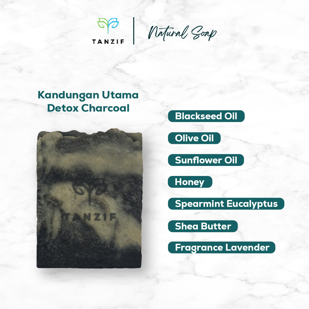 Natural handmade Soap untuk menjaga kesehatan kulit. Terbuat dari bahan utama arang aktif yang telah digunakan sejak turun temurun untuk merawat kulit, mengatasi jerawat, menyerap minyak berlebih dan menghaluskan kulit. Sabun ini dibuat dengan metode Cold Process melalui proses curing selama 4-6 minggu, menghasilkan sabun yang creamy dan deep moisture.