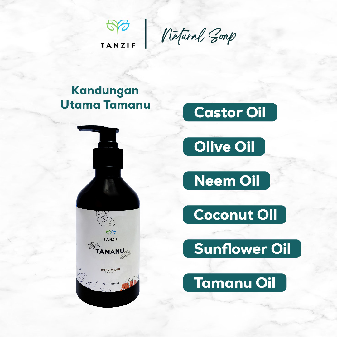 Natural handmade Soap untuk perawatan kesehatan kulit. Sabun dengan kandungan tamanu oil yang didapatkan dari tanaman "Nyamplung" telah digunakan secara turun temurun untuk menjaga kesehatan kulit dan mampu mengatasi jerawat punggung serta memudarkan bekas luka. Liquid bodywash ini memiliki aroma yang menenangkan sehingga bisa memberikan sensasi relaksasi saat mandi.