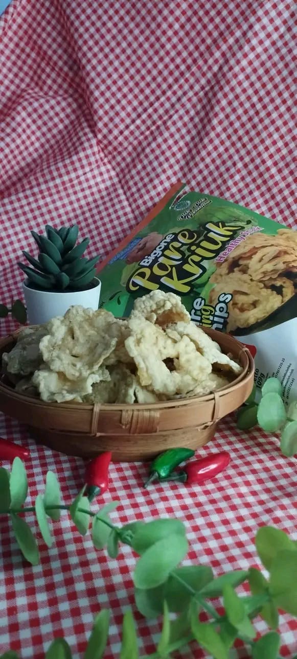 Keripik pare "Bigone" adalah olahan cemilan tradisional yang terbuat dari buah pare yang kaya akan manfaat. Dengan tehnik pengolahan khusus, buah pare yang tadinya pahit setelah diolah sedemikian rupa menjadivtidak pahit malah menjadi gurih dan renyah. Cocok bagi anda yang membutuhkan cemilan sehat gurih rasanya. Ayo beralih kita mengkonsumsi cemilan sehat dan bermanfaat.