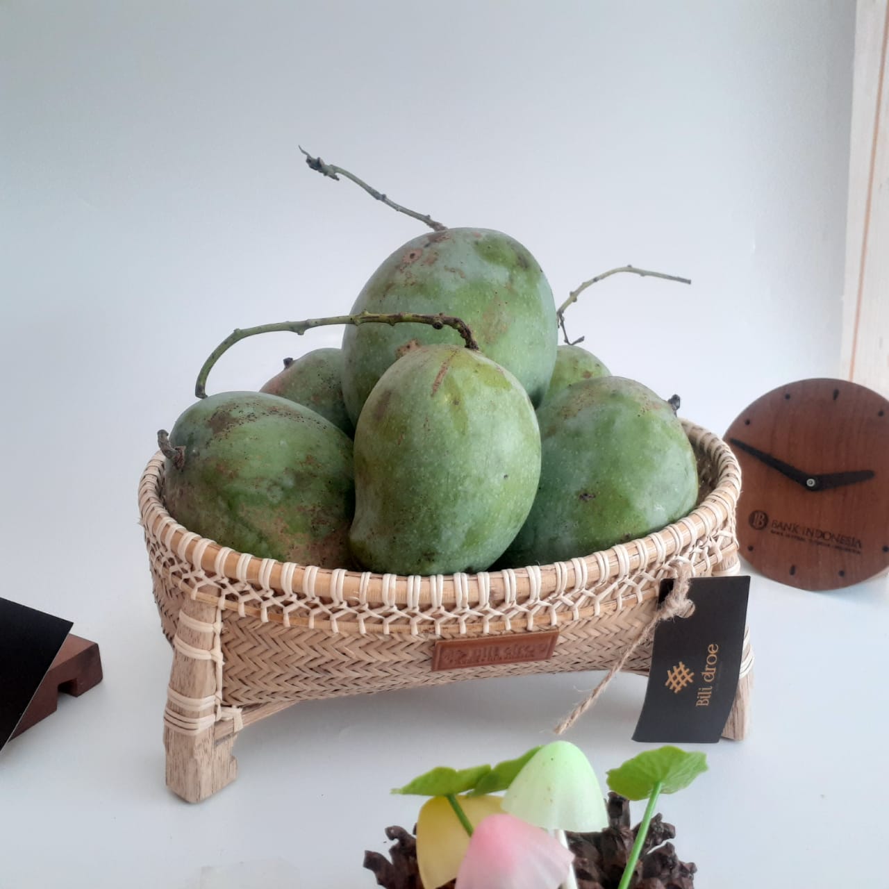 Anyaman Kulit Bili/bemban Yang Di Bentuk Menjadi Keranjang Anyaman Yang Rapi Secara Finishing, Keranjang Ini Di Buat Dengan Kaki Kayu Yang Akan Memperkuatkan Produk Dan memiliki 2 kayu yang menjadi alas di bawah keranjang.