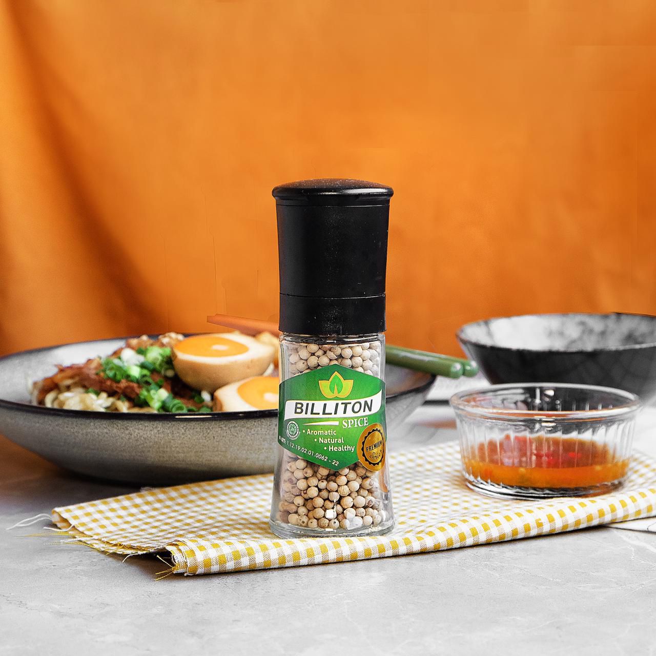 Lada Putih Billiton spice dihasilkan dari biji lada pilihan yang dipanen langsung oleh petani dari pulau Belitung.