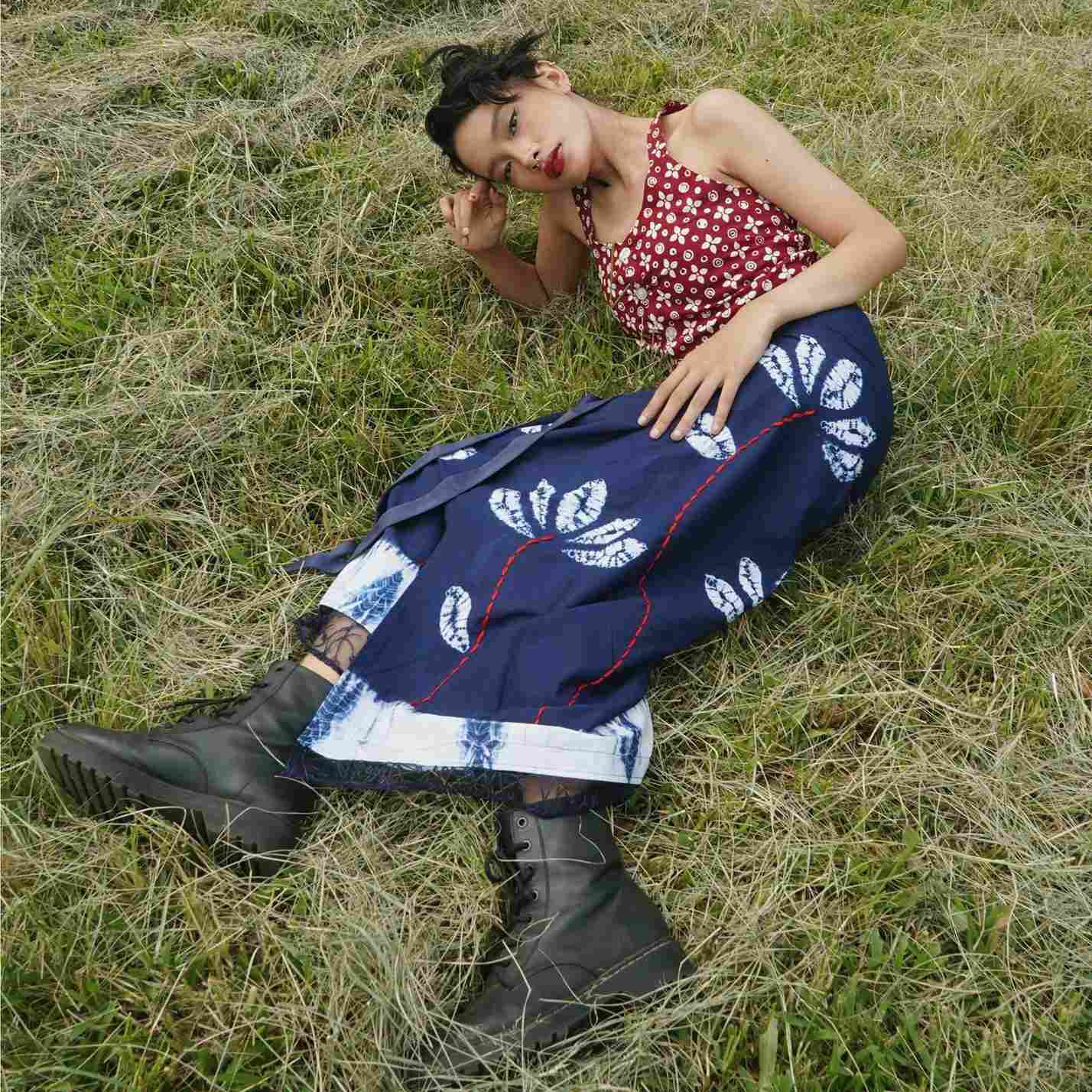 BOOLAO Saroong Lotus Nui Shibori Embroidery Wrap Skirt