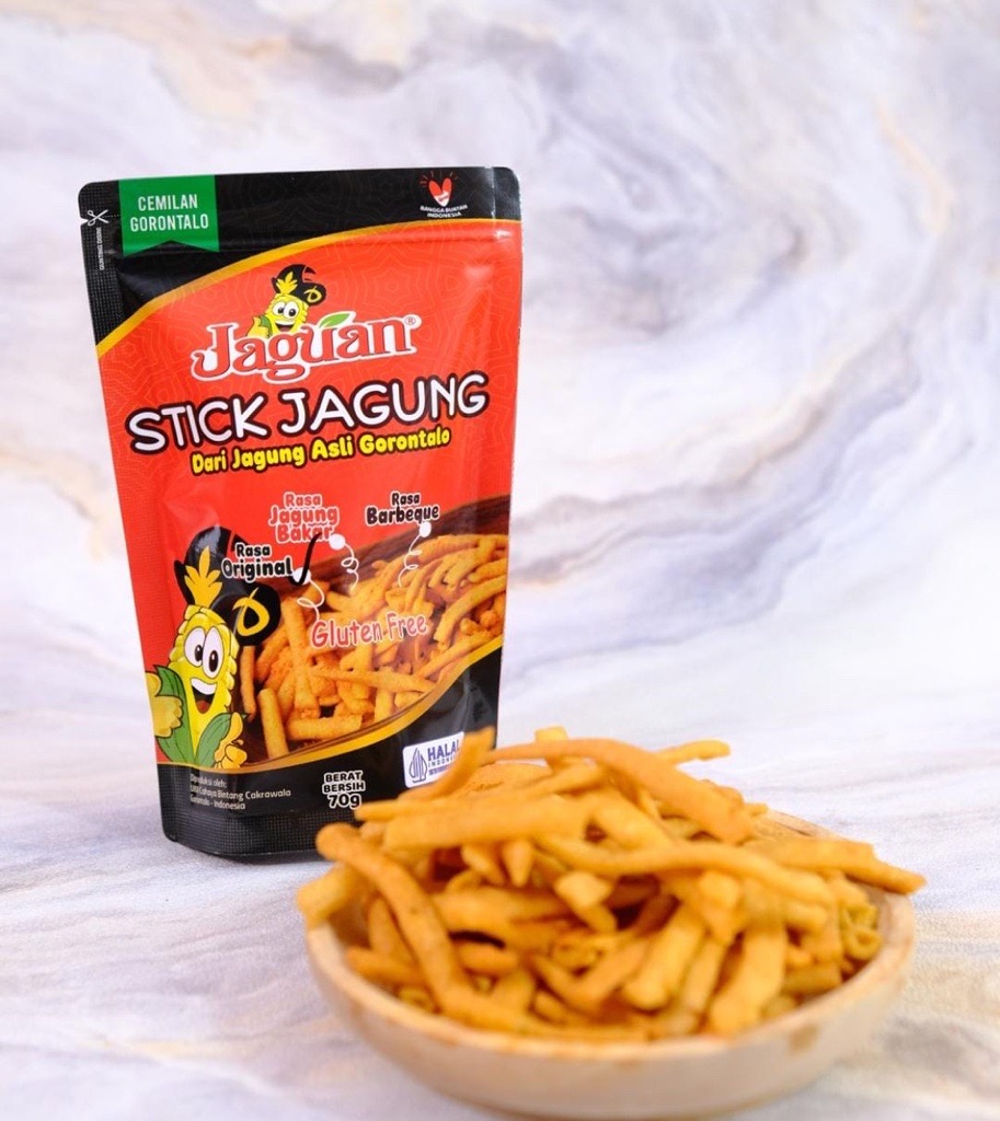 Jaguan adalah camilan dari Jagung lokal asli Gorontalo yang berkualitas, diracik dengan bumbu alami tanpa pewarna dan pengawet buatan. Stick Jagung Jaguan tinggi akan karbohidrat, sehingga dapat menjadi sumber energi untuk aktifitas anda sehari-hari.