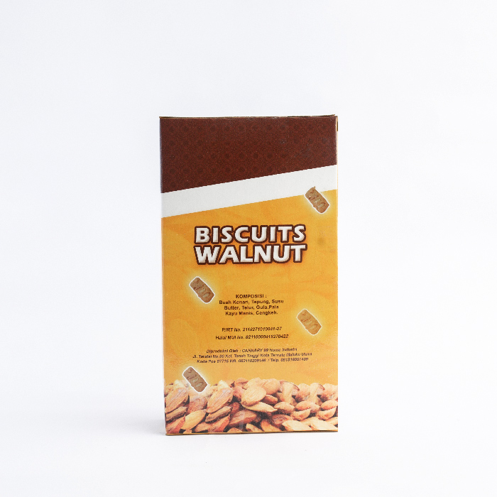 Biskuit walnut adalah sejenis kue kering yang terbuat dari adonan tepung terigu, mentega, gula, dan kenari cincang. Biskuit ini memiliki tekstur yang renyah dan kering, serta rasa gurih dan kaya akan kenari. Dengan kombinasi rasa gurih, tekstur renyah, dan aroma kenari yang khas, biskuit walnut menjadi pilihan yang menarik bagi pecinta camilan kering dan pecinta kenari