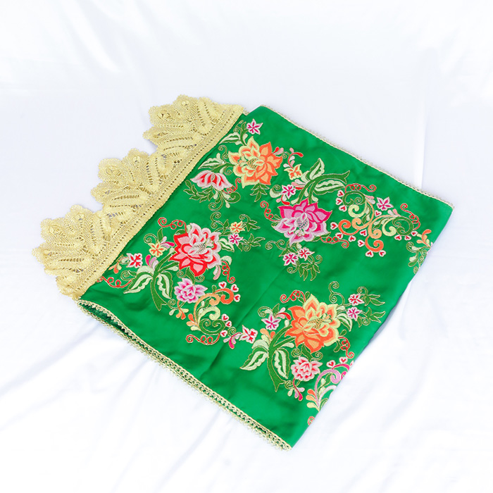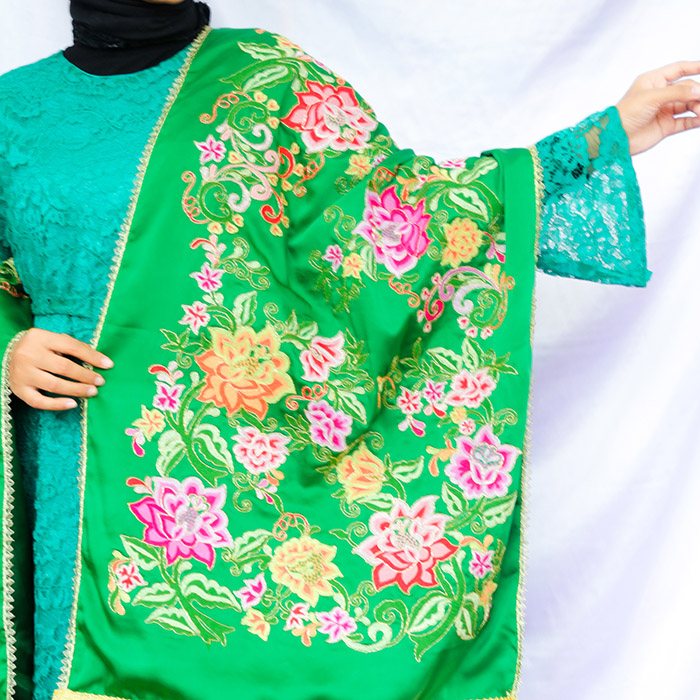 Makna Motif: Motif bunga penuh dengan beragam warna melambangkan keindahan dan keceriaan seorang wanita