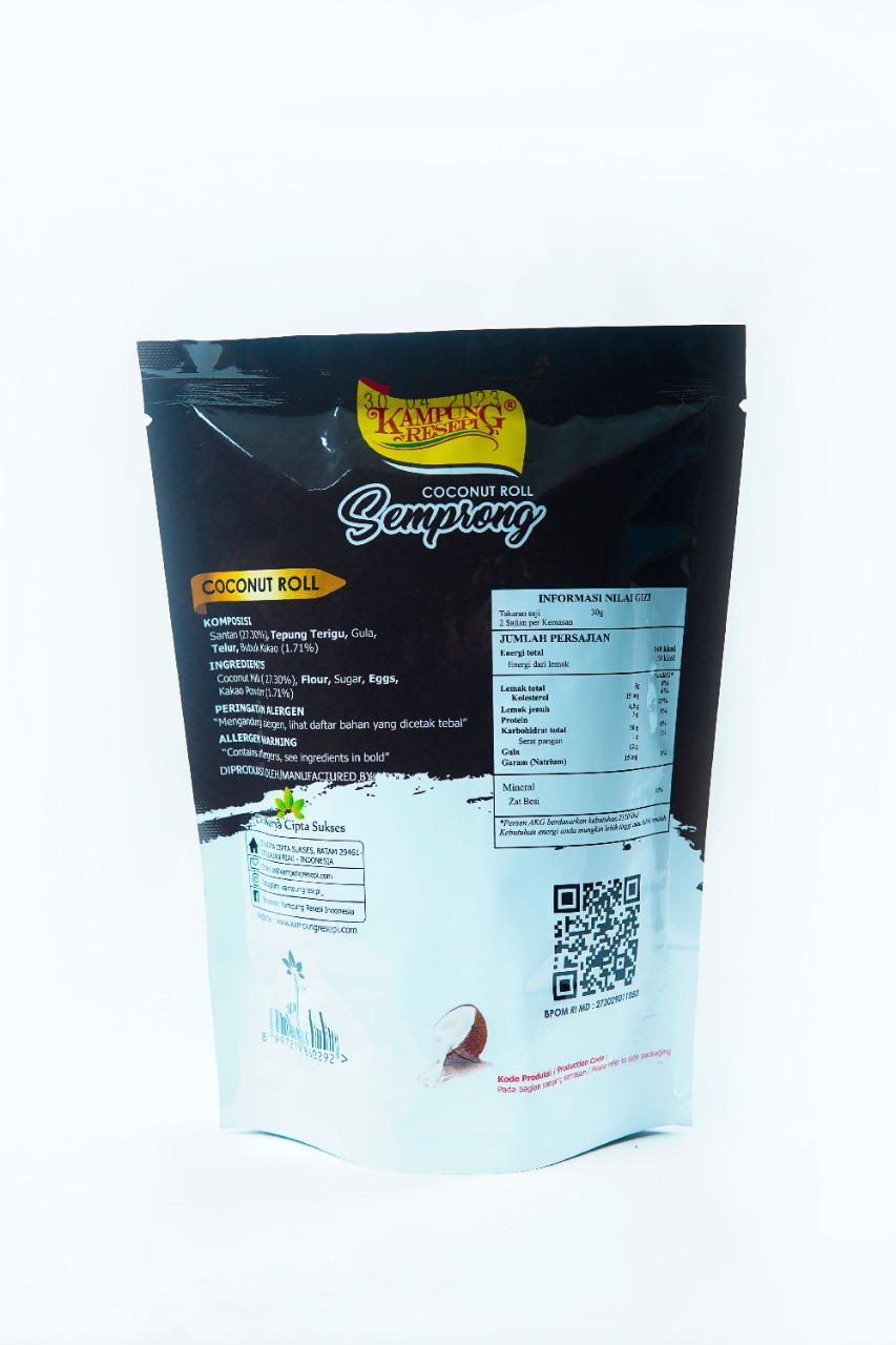 | Kue lebaran yang ada setiap hari, dibuat menggunakan santan murni dan perasan pertama, tanpa bahan pengawet, tanpa MSG. Coconuts Roll rasa Chocolate sangat cocok dalam aktifitas keseharian dari anak-anak sampai dengan dewasa |