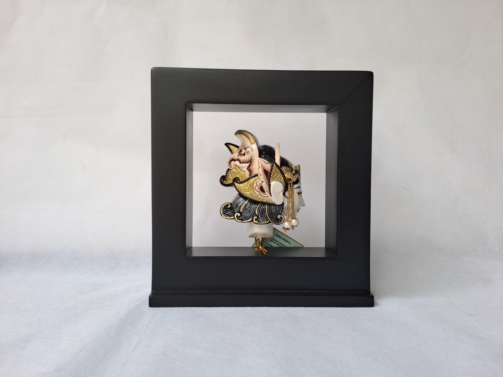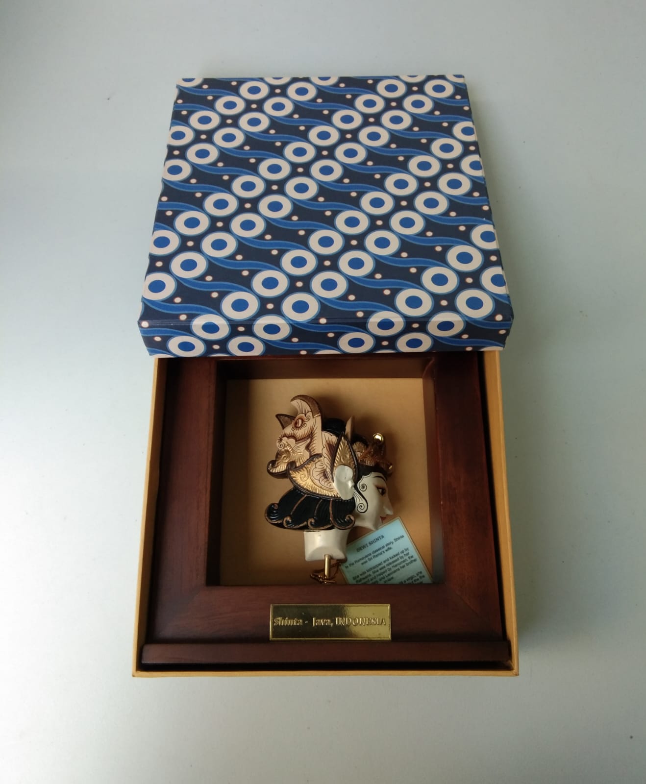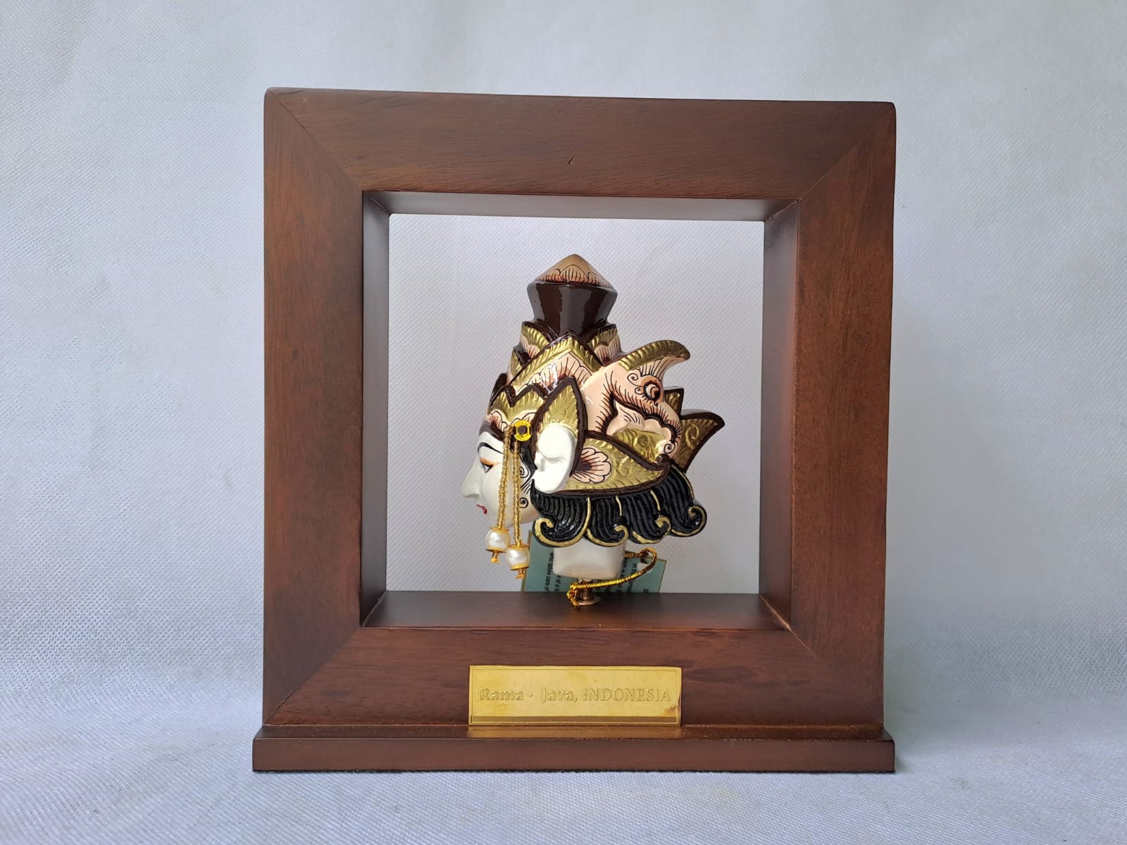 Dalam Paket terdapat 1 patung kepala Rama atau Shinta dalam frame dengan box tutup batik dan narasi Rama atau Shinta