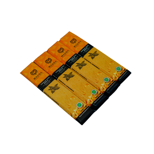 Cokelat compound yang terbuat dari biji kakao lokal pilihan dengan cita rasa yang khas.