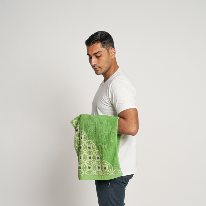Handuk tenun batik dengan motif kawung bermakna kewibawaan
