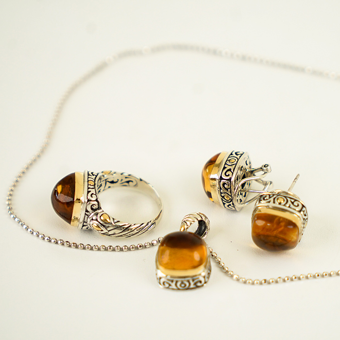 Design ini ter ispirasi dari Pillow (bantal) yang mana dipilihnya permata Citrine yang sangat menonjol dengan di ikat oleh bezel emas 18k terkesan sangat elegan. Karena permata Citrine juga dipercaya memiliki aura positif yang sangat kuat. Serta dengan ditambahkannya sentuhan ukiran bali serta taburan Gold plong 18k menambah keanggunan dari produk ini. Design ini dibuat dalam jenis : Anting, Cincin, serta Pendant.
