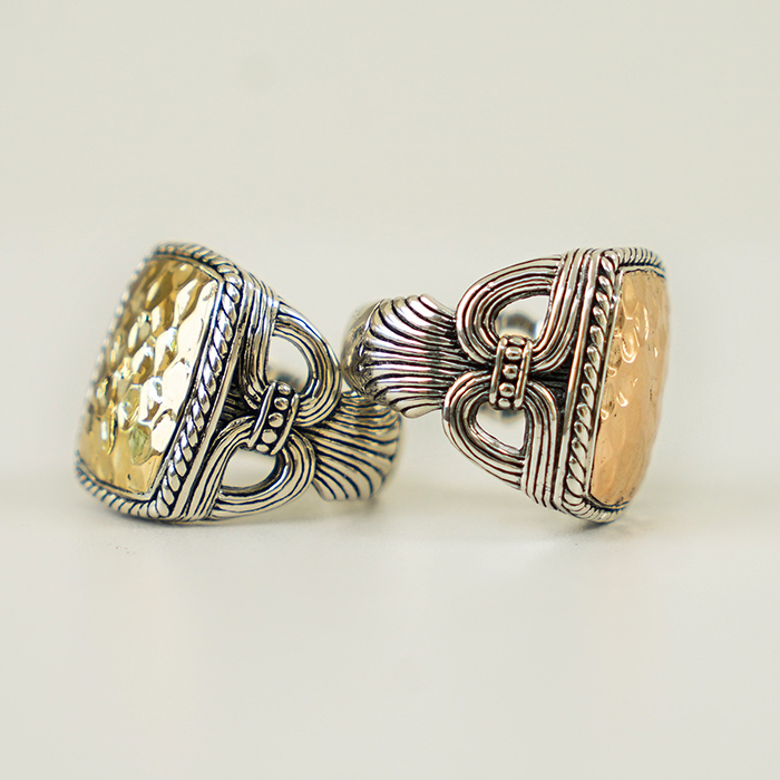 Design ini ter inspirasi dari se ikat tali tambang yang terikat di sebuah pasak yang terkena hantaman Gelombang serta teriknya Matahari sehingga terbentuk texture seperti terkikis . Keindahan cincin ini juga terlihat jelas dari tampak depan yang mana di hiasai oleh Hammer Rose Gold 18k