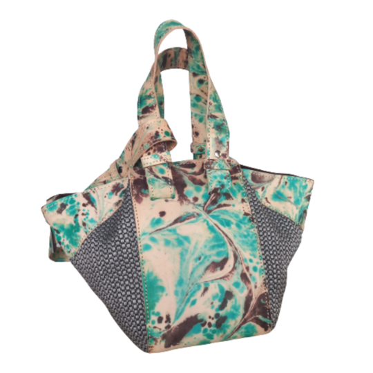 Material terbuat dari kulit sapi ebru water colouring trasfer yang terlukis didalam air dengan kombinasi kain china tebal unik