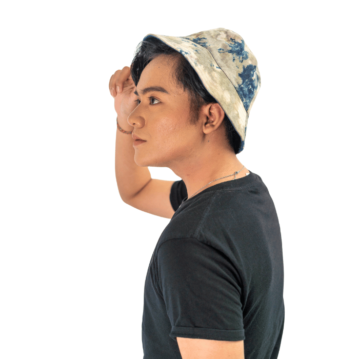 Topi bucket dengan bahan kain pewarna alam
