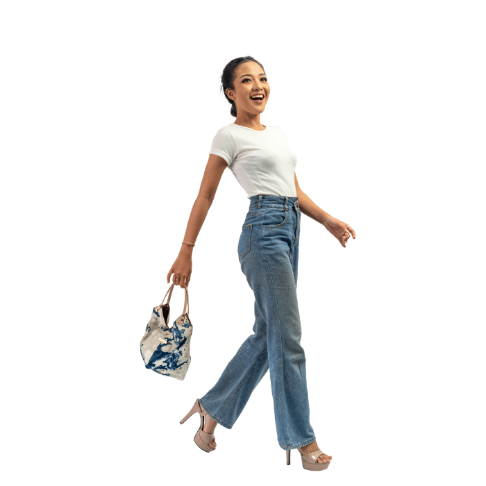 Tas model origami dengan bahan kain pewarna alam dan tali kulit sapi