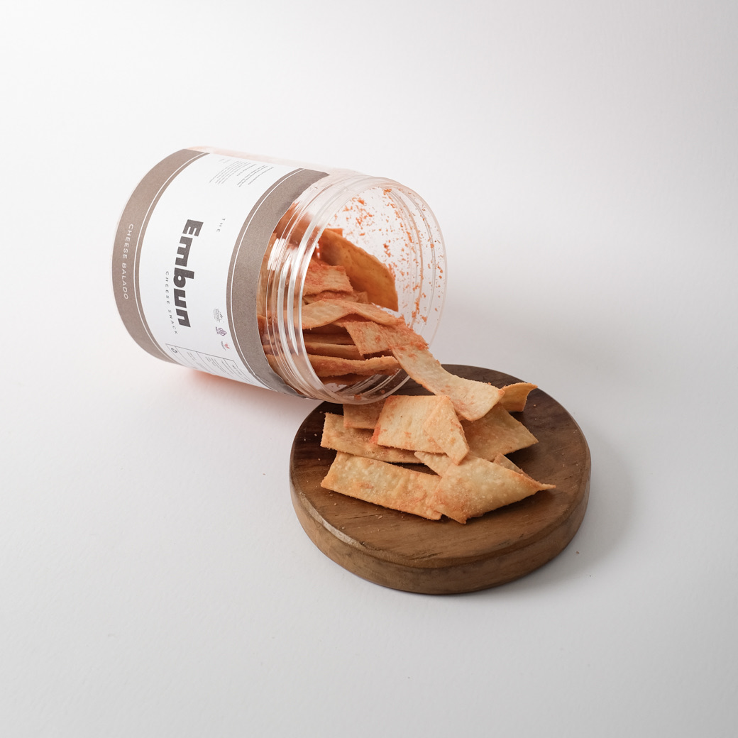 Cheese Balado, di mana keripik singkong diberi bumbu balado yang khas dan dilumuri dengan keju yang lezat. Rasa pedas dan gurih dari bumbu balado dipadukan dengan keju yang meleleh, menciptakan kombinasi yang sempurna bagi pecinta rasa yang kaya.
