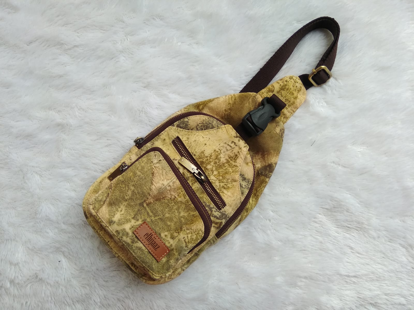 Tas crossbody elegan, berbahan Ecoprint Kanvas. Produk ramah lingkungan, jahitan kuat dan rapi