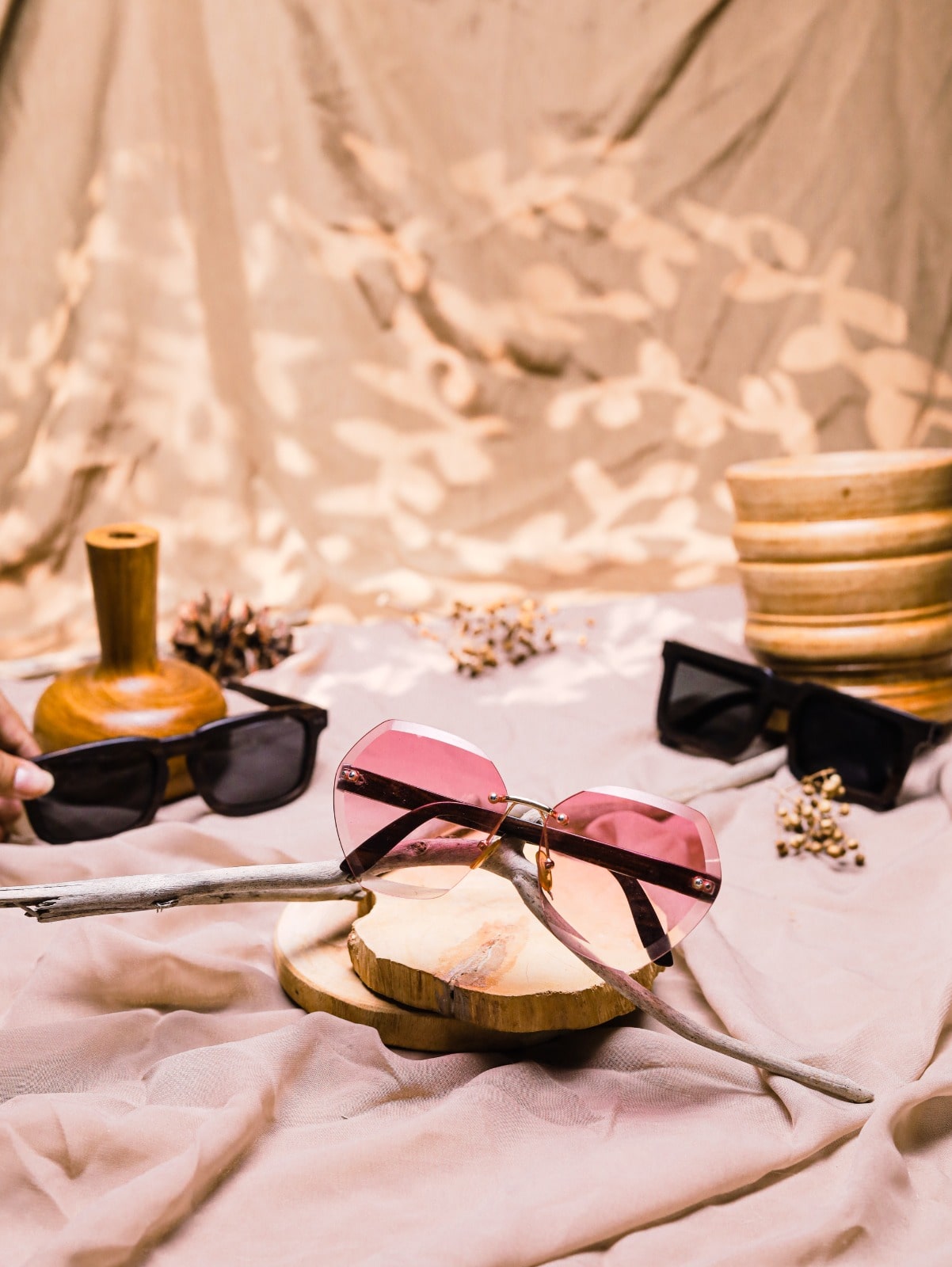 KACAMATA LENSA PINK DENGAN GAGANG KAYU EBONY