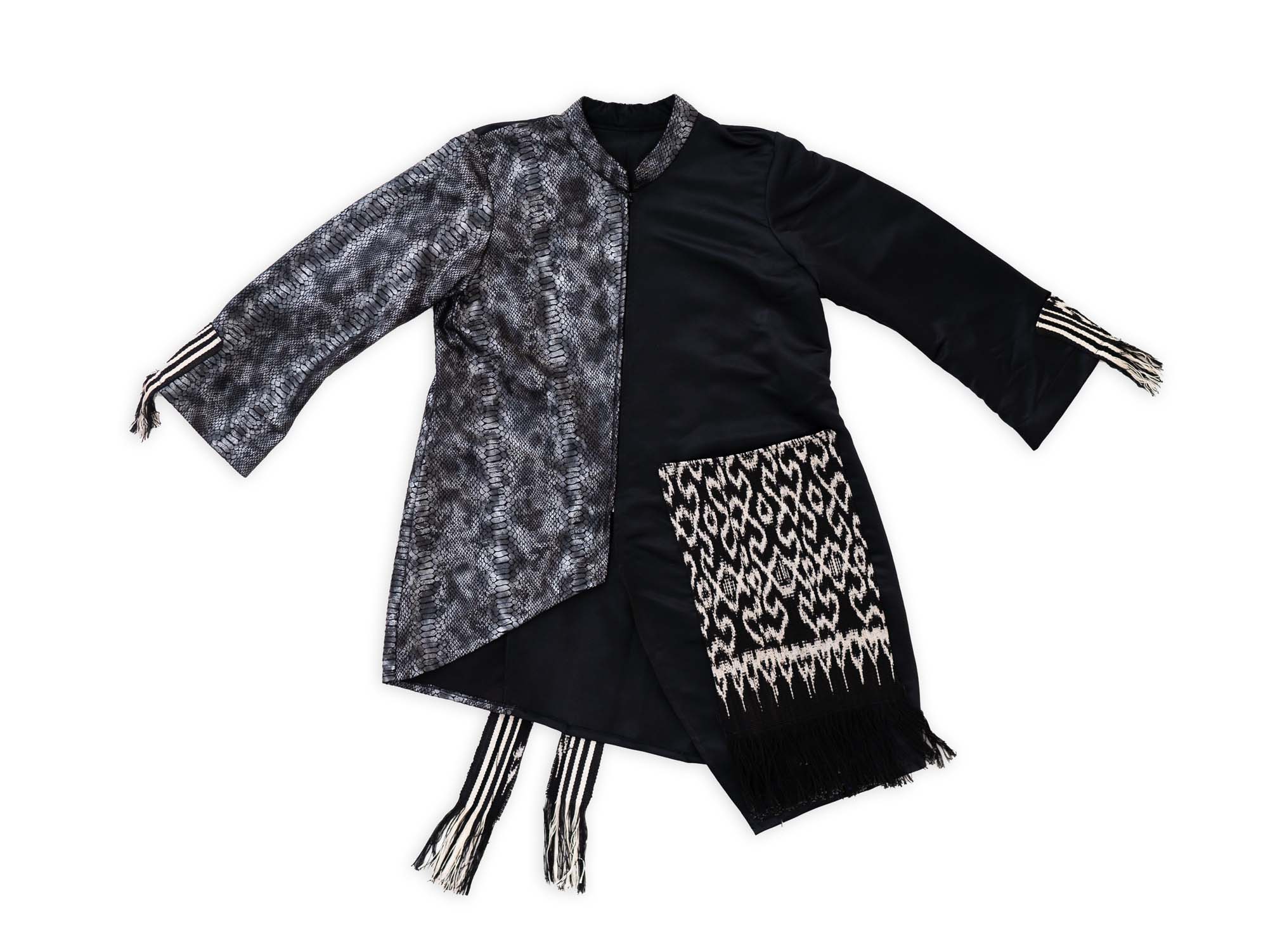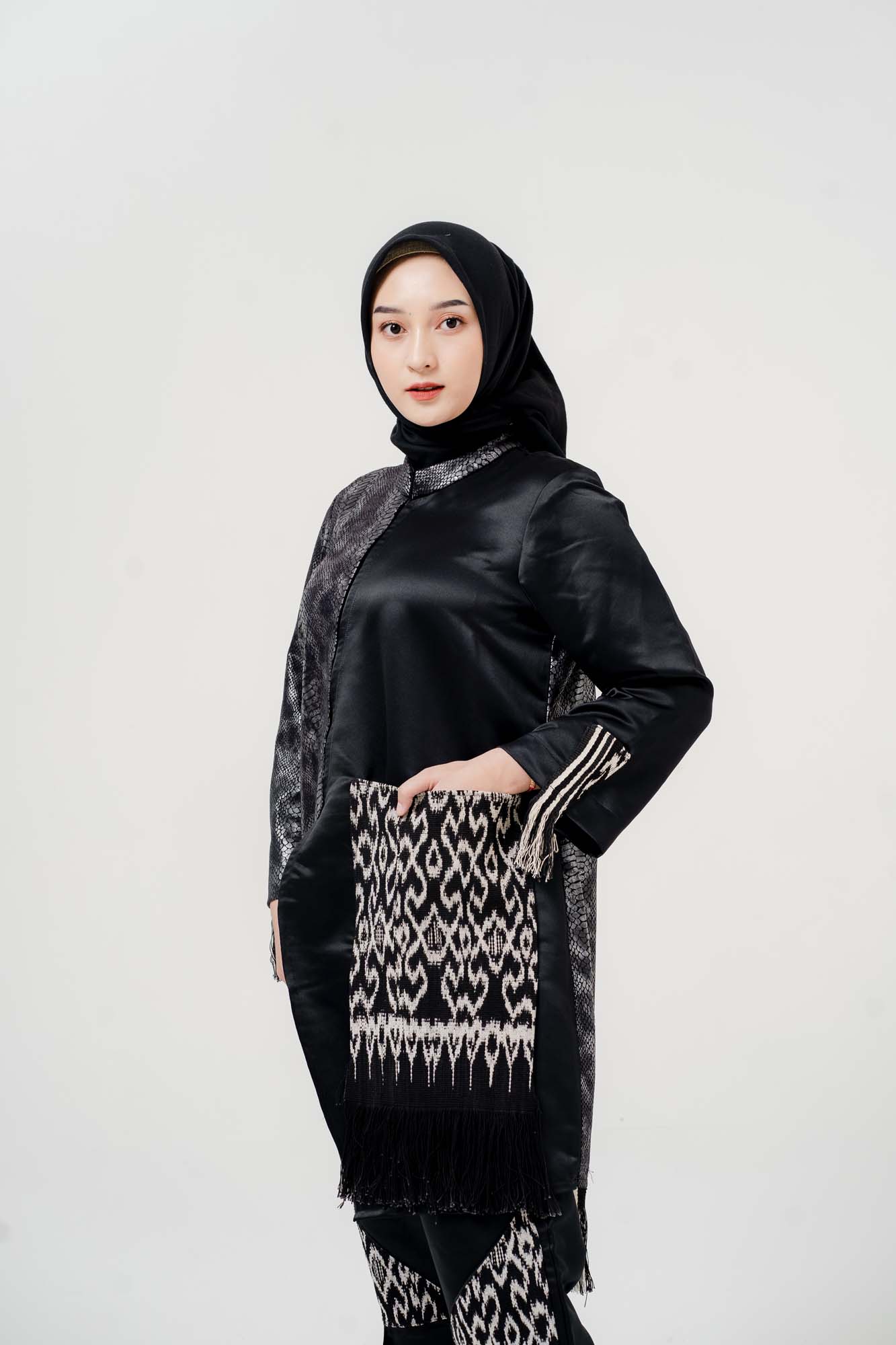 Setelan Hitam Aplikasi Tenun Ikat Sekomandi Motif Tonoling dan Tas