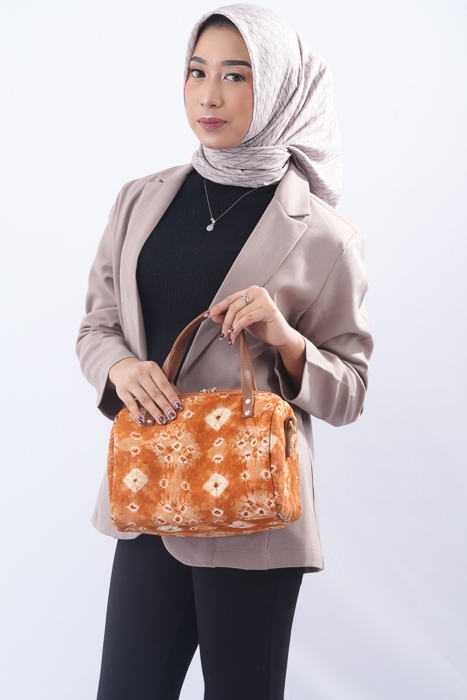 Tas yang terbuat dari kain Jumputan dengan pewarna alam, dilengkapi dengan tali panjang adjustable 130cm