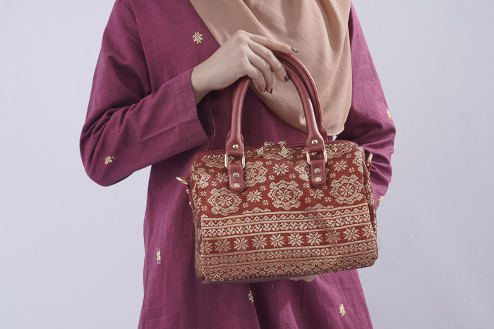 Terbuat dari kain songket asli Palembang, dilengkapi dengan tali panjang adjustable 130cm