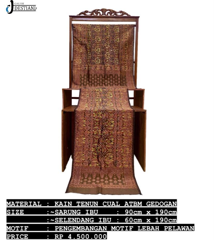 Galeri Destiani didirikan pada tahun 2015, memproduksi kain tenun ATBM dengan motif cual yang merupakan inovasi pengembangan dari motif cual kuno, warisan leluhur khas Bangka Belitung. Diproduksi secara manual, menghasilkan kain yang berkualitas dan mempunyai nilai seni tinggi.