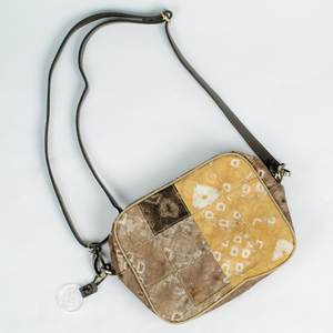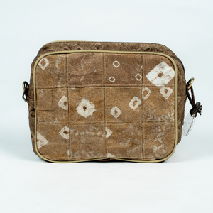 Tas ini terbuat dari Kain jumputan pewarna alam, kulit sintetis untuk tali