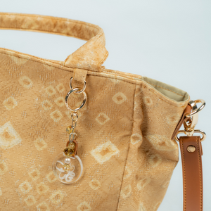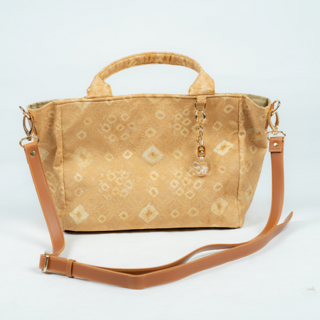 Tas ini terbuat dari kain jumputan pewarna alami ,kulit sintetis pada bagian alas