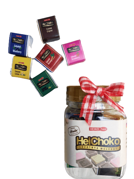 HeiChoko sebagai Produsen Coklat Home made 100% Halal MUI dengan menggunakan bahan berkualitas, memiliki banyak varian rasa dan pilihan kemasan unik. Untuk varian rasa kami memiliki total 16 rasa yaitu original, dark chocolate, mede, kacang, almond, kurma, kismis, lemon, strawberry, blueberry, green tea, mint, mix fruit, strawberry fruit, kelor dan jahe merah.