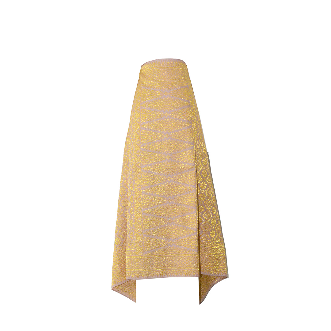 Nama Motif: Tolap Tampuk Manggis diihiasi dengan Kepala kain motif pucuk rebung