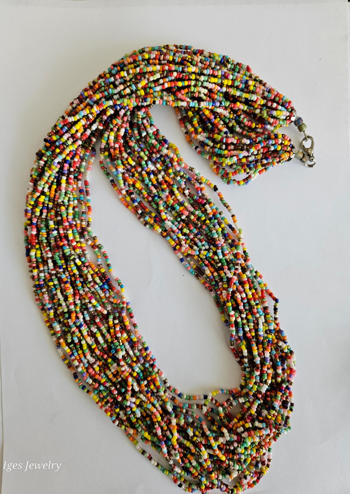 Kalung ini terbuat dari manik manik khas suku Kalimantan, dikenakan sebagai penolak bala, dan dipercaya dapat menolak roh jahat. Cocok dikenakan pada busana Formal & Non-formal.