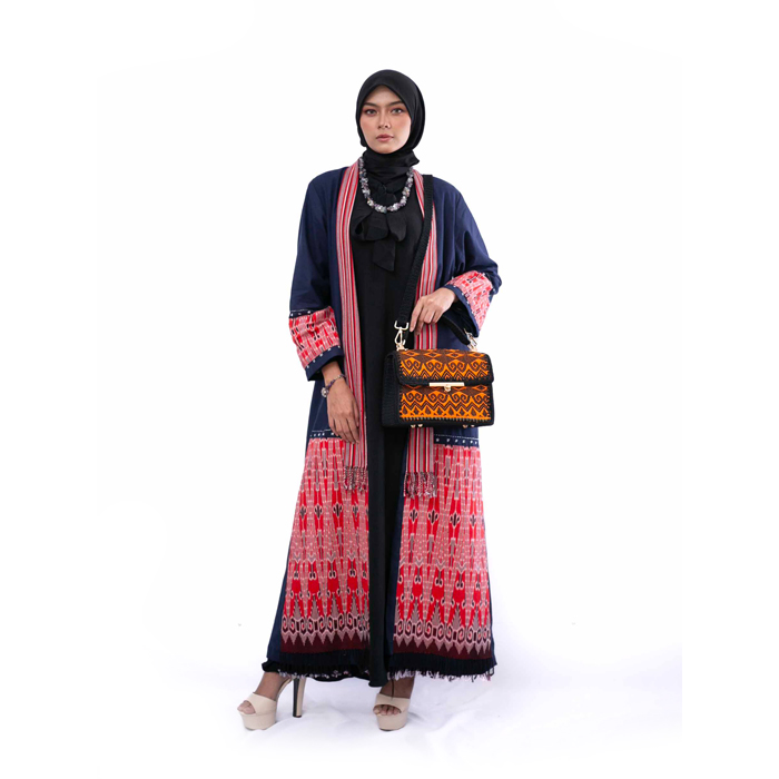 Handbag kombinasi rajut, kain tenun ikat Dayak Sidan.