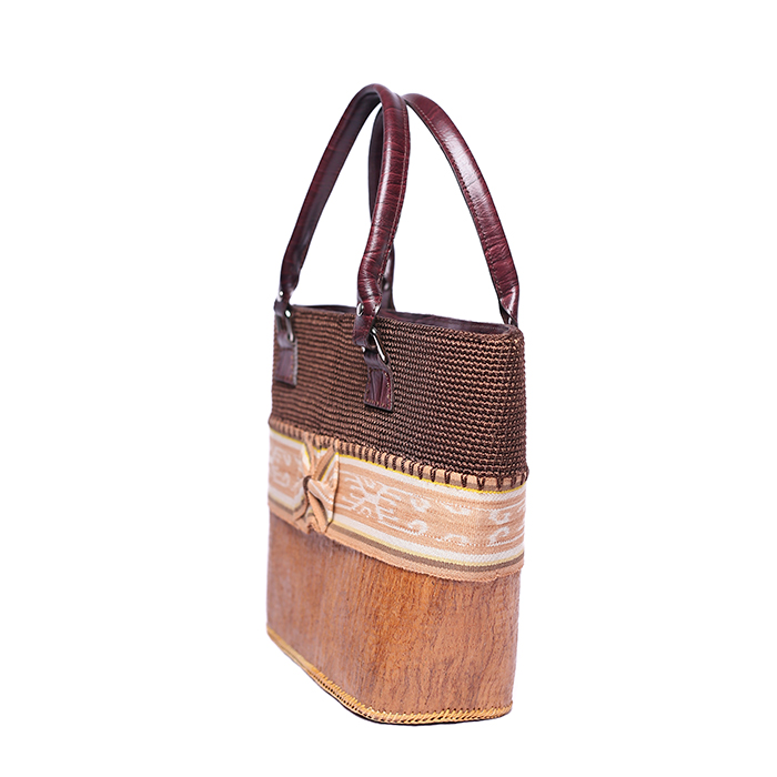 Totebag rajut Kapuak ini dibuat dari bakul Kapuak yang di sekeliling atasnya dilapisi dengan syal tenun Dayak kemudian dirajut memutar sampai ketinggian yang diinginkan.