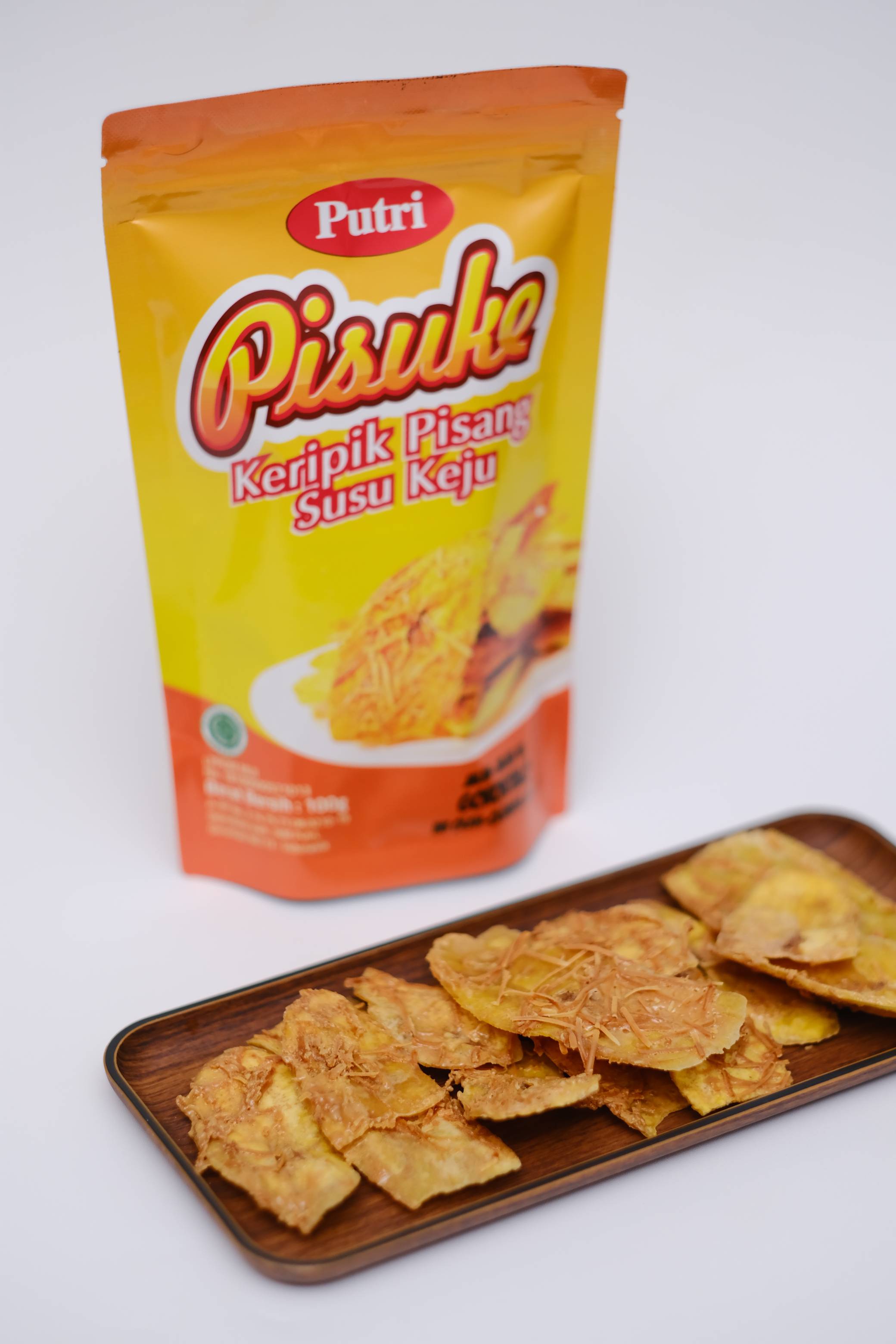Keripik Pisang Susu Keju atau PISUKE adalah cemilan khas dari Gorontalo yang dibuat dari bahan baku lokal yang banyak dijumpai di Gorontalo yaitu pisang tanduk. Pisang berkualitas diberikan toping susu dan keju kemudian di panggang hingga garing. Produk Pisuke tidak akan di jumpai di daerah lain karena pisuke adalah hasil inovasi UMKM