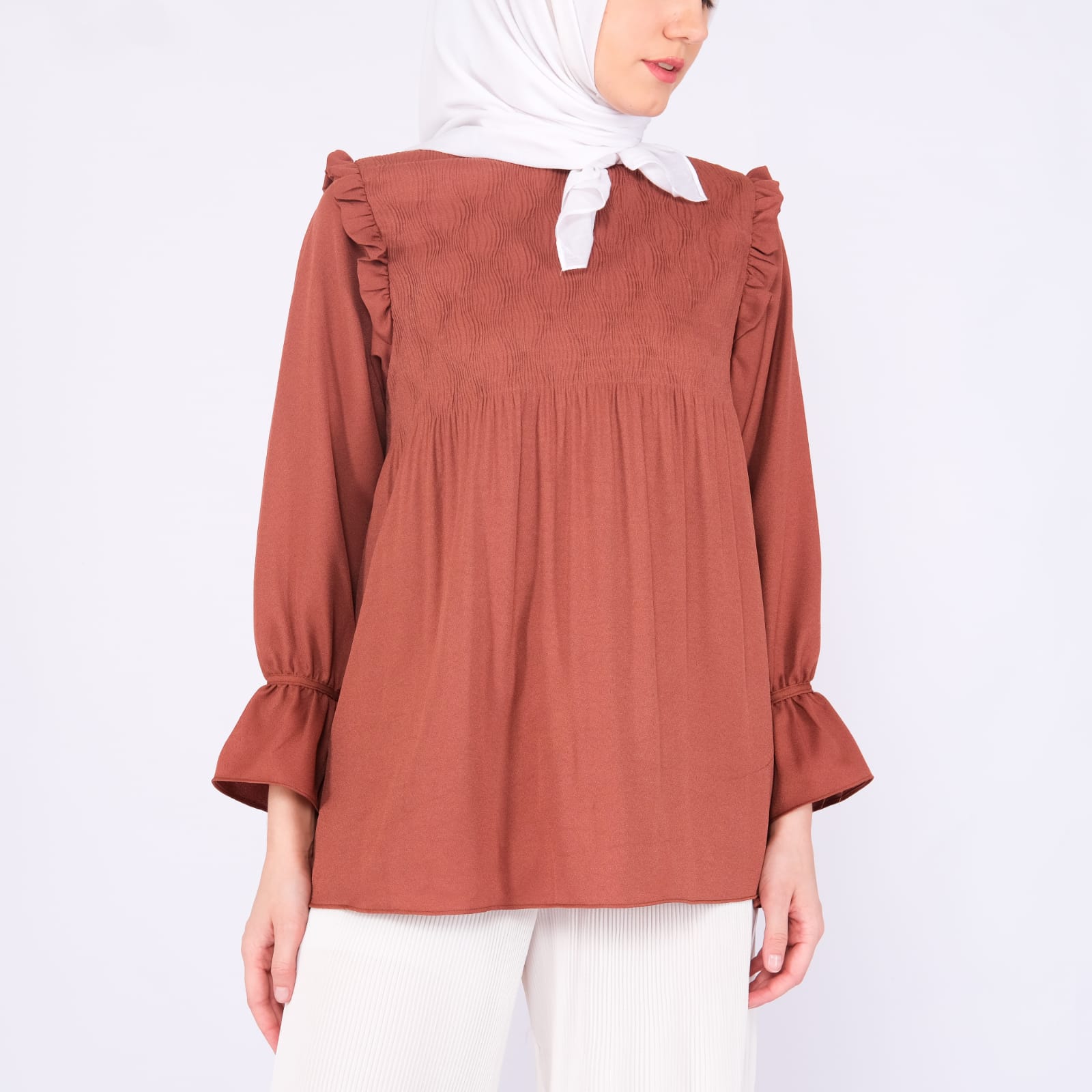 Baju Atasan Plisket terracota
