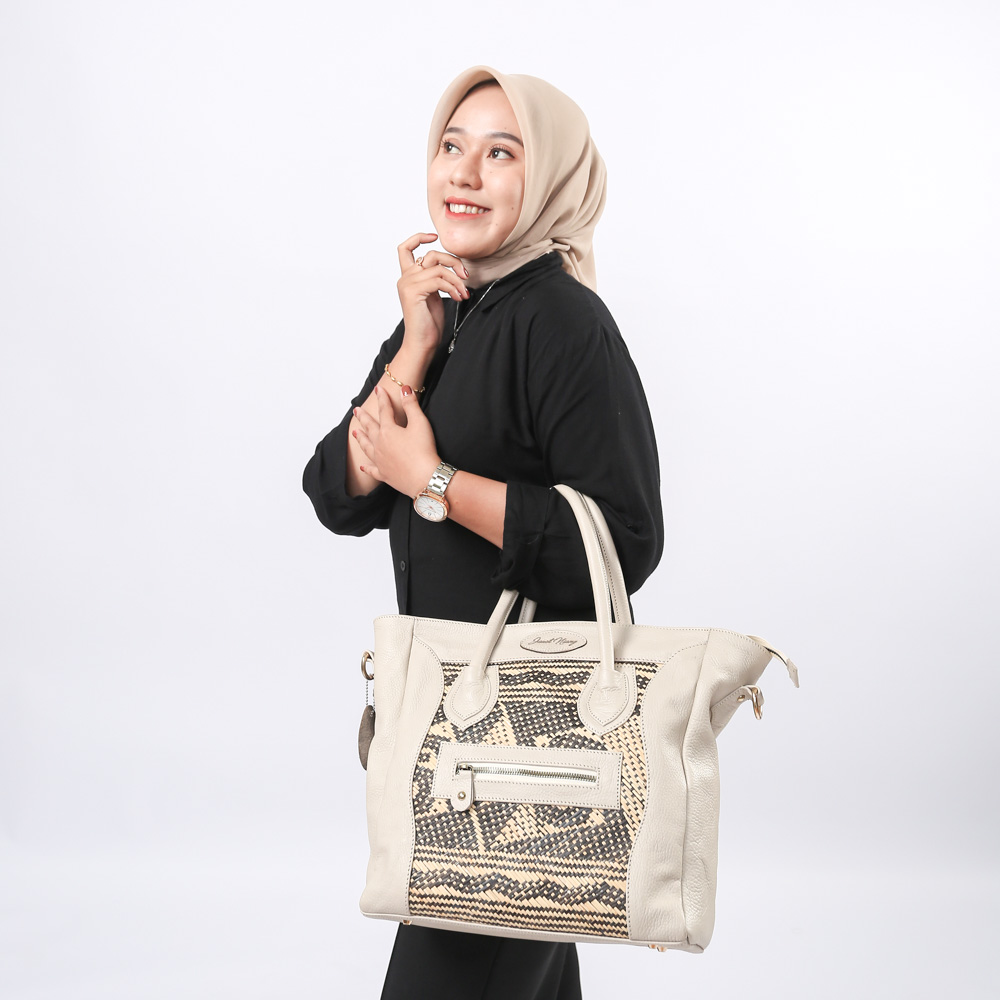bahan kulit asli kombinasi dengan motif anyaman rotan dare ihing dan dare handipe uru