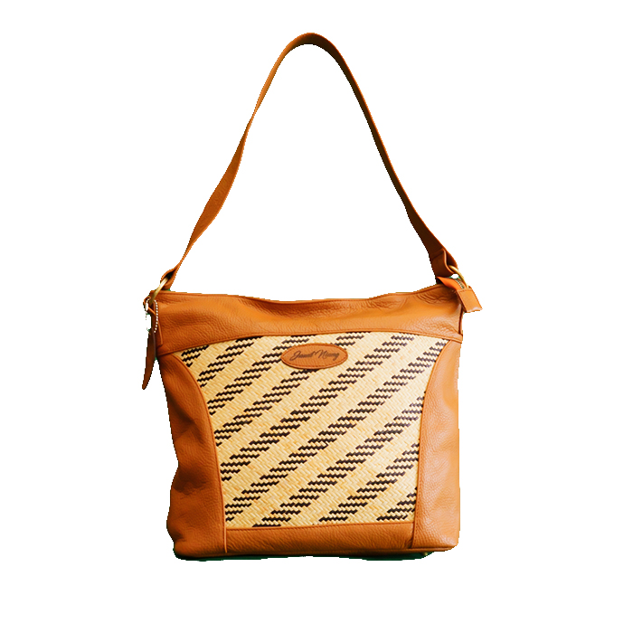 kombinasi kulit asli dengan motif anyaman rotan ekor burung