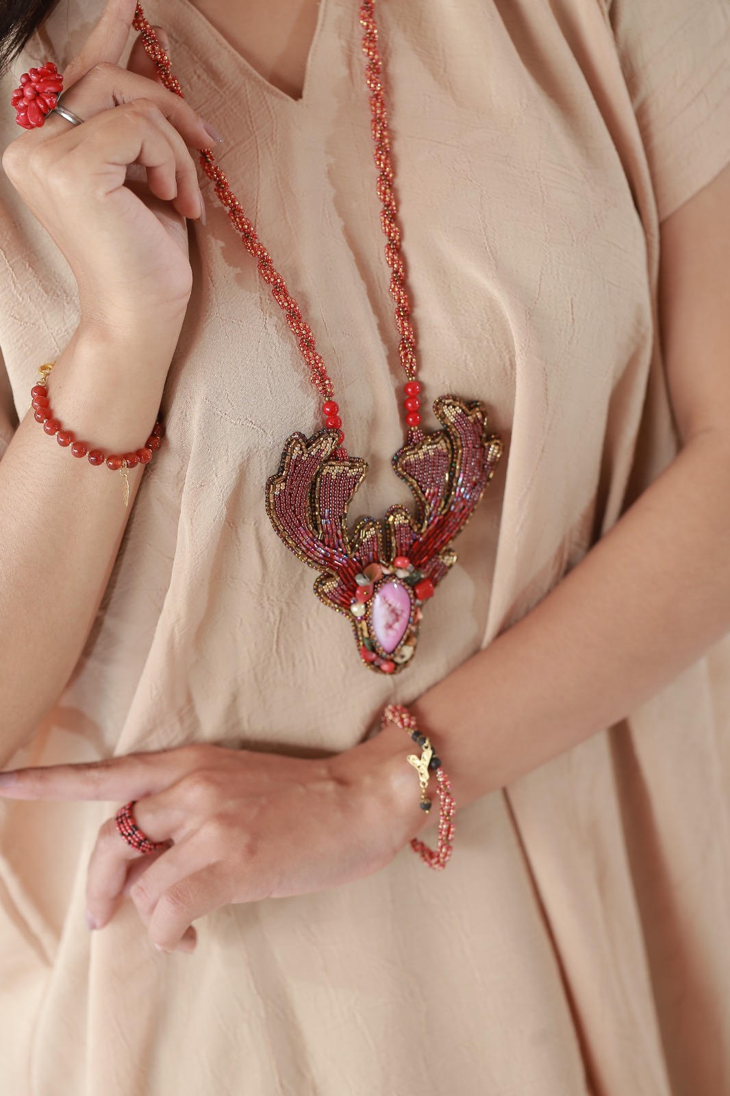 Rusa si lincah dan bijaksana. Masih mengambil inspirasi dari benda pusaka Keraton Yogyakarta, tanduk rusa nan anggun diterjemahkan ke dalam desain kalung premium. Dikerjakan 100% dengan tangan, detail dan kerapiannya begitu mengagumkan. Pasangkan dengan tunik dan tonjolkan kelincahan langkah serta kebijaksanaan berpikir layaknya seorang pemimpin.