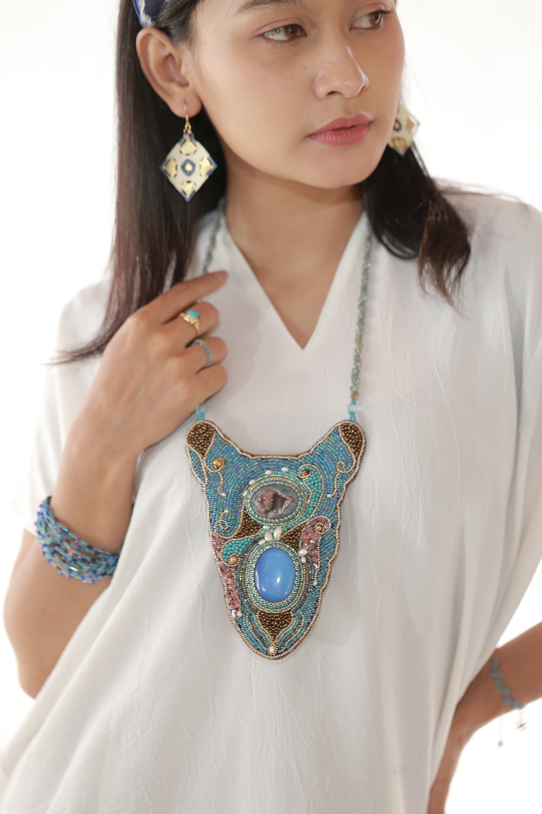 Jenis Bahan: Kain Tenun, Batu, Manik-manik, Parchment leather