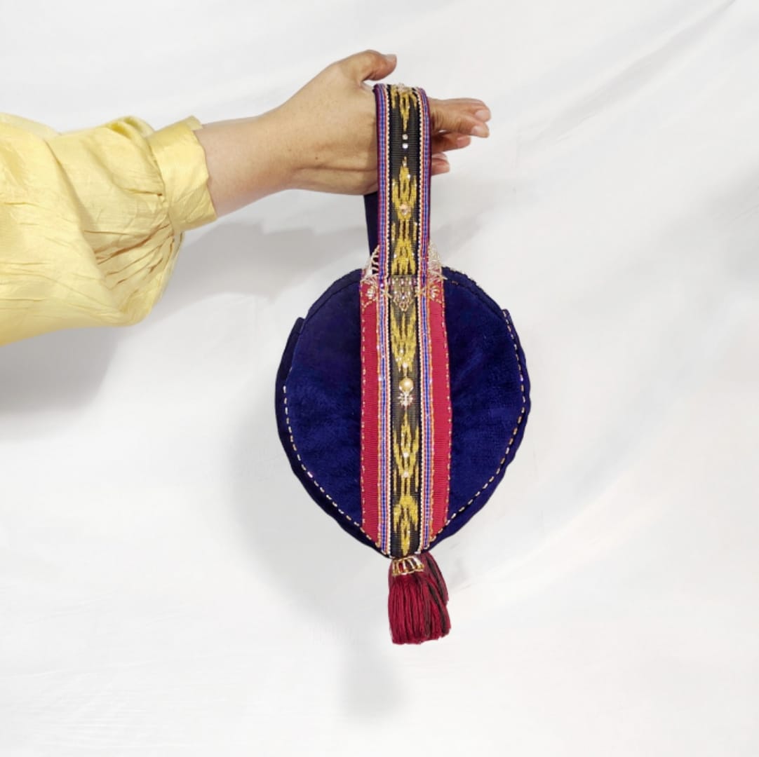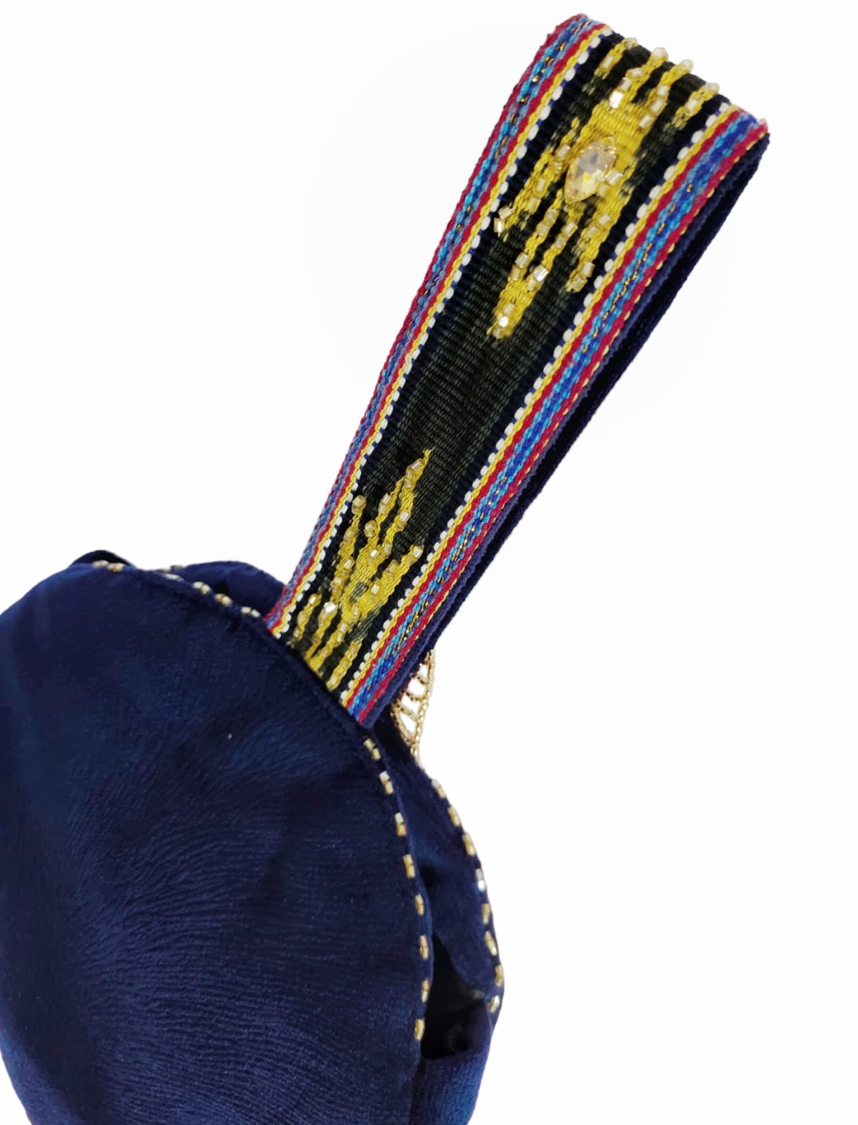 Desain pouch unik ini merupakan koleksi Premium Kabeta Glam mengangkat warisan seni budaya dan Alam lokal yaitu Tenun Ikat Tanimbar dan Mutiara kepulauan Dobo. Kreasi Kabeta ini juga bagian dari upaya menjaga Warisan Maluku. Keanggunan yang eksotis dan glamour diatas ikatan motif tradisional Tenun berpadu taburan Mutiara Maluku, Payet dan kristal bermutu. Pekerjaan yang detil serba handmade dan dibuat dengan cinta. Wristlet Pouch ini dibuat limited items dan menjadi karya Artisan khas Kabeta.