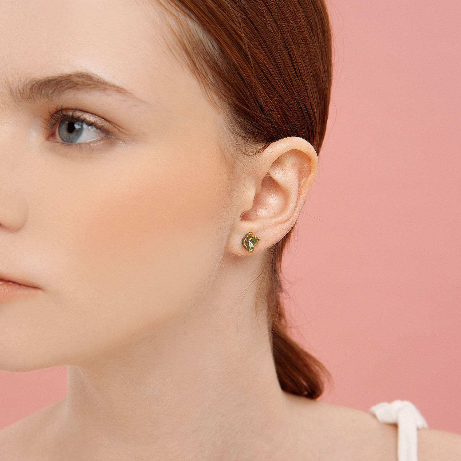 Anting-anting mungil yang sempurna untuk aktivitas sehari-hari. Halus namun mencolok dengan aksen emas. Semua perhiasan dari KAR dibuat satu per satu di studio kami.