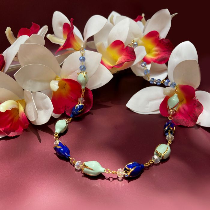 Kalung porselen yang terinspirasi dari bunga teratai. Melambangkan kemurnian dan pencerahan. Semua perhiasan dari KAR dibuat satu per satu di studio kami.