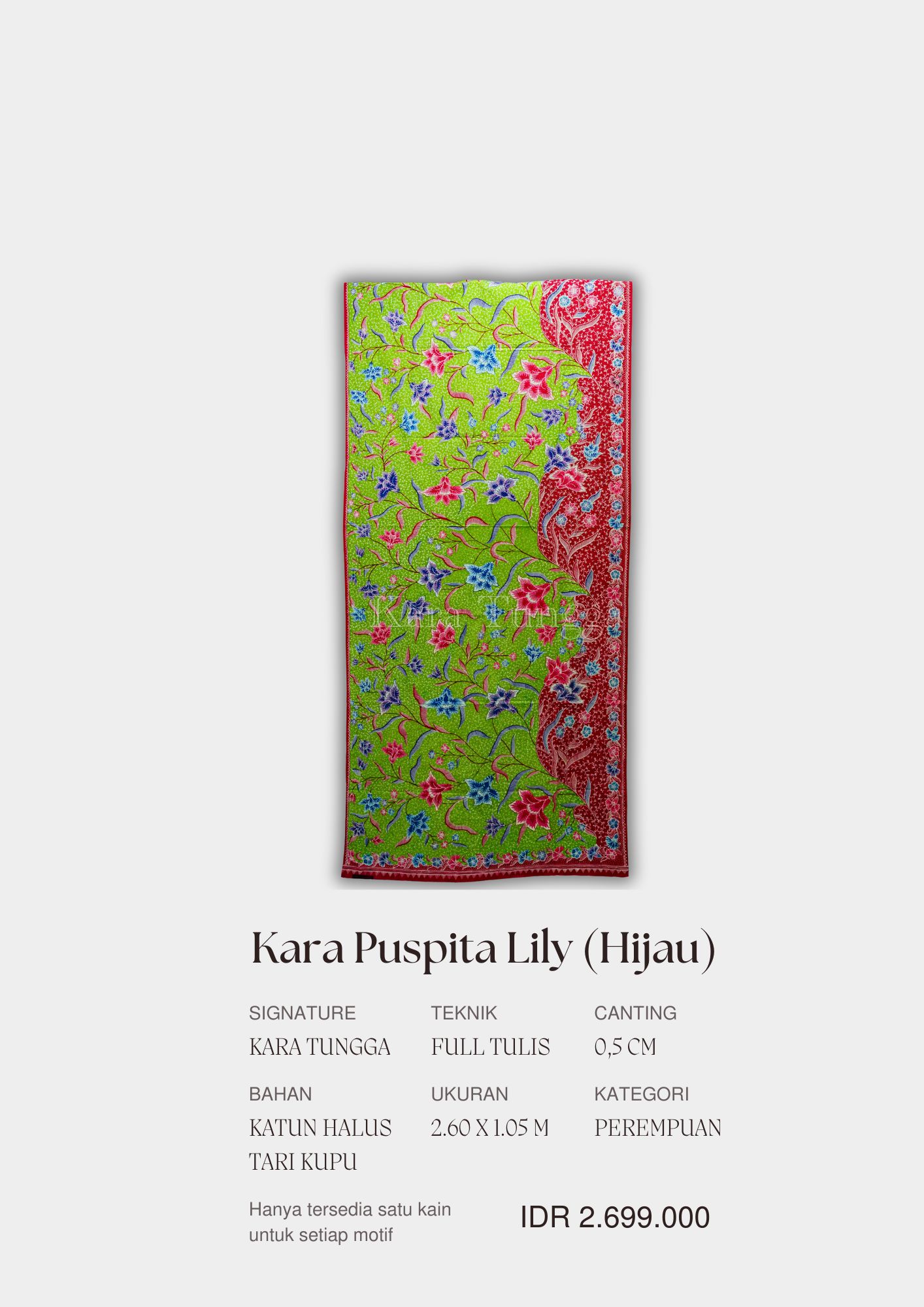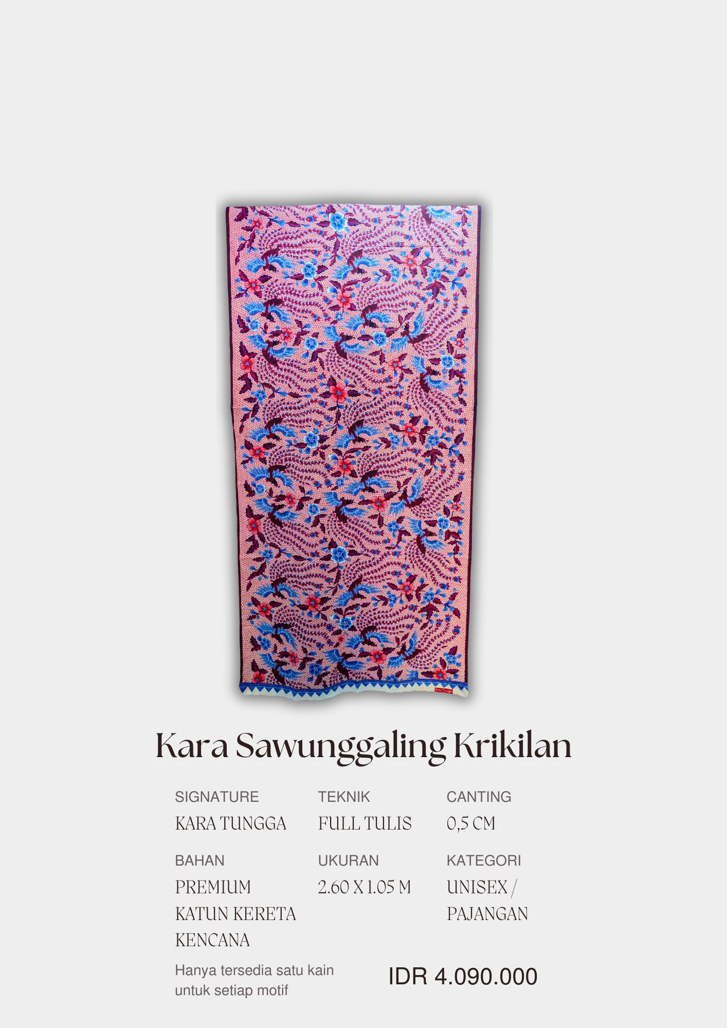 Kara Tungga merupakan brand batik pesisir Jawa (Pekalongan) , lebih fokus untuk gaya batik tulis peranakan Tionghoa dan Belanda. Nama Kara Tungga diambil dari bahasa sansekerta yang berarti “Sinar yang di Muliakan”. Kara Tungga memproduksi berbagai macam batik tulis dengan motif langka dengan menggabungkan unsur batik lawas peranakan dengan unsur warna dan keindahan Kara Tungga.