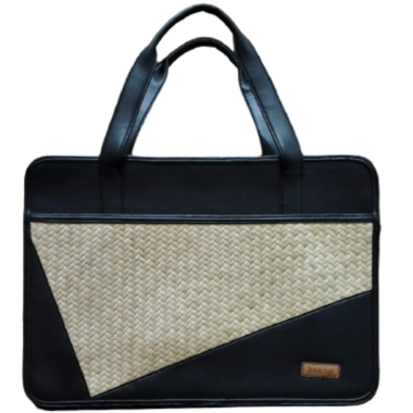 Bahan material kulit sintetis di kombinasi anyaman pandan.