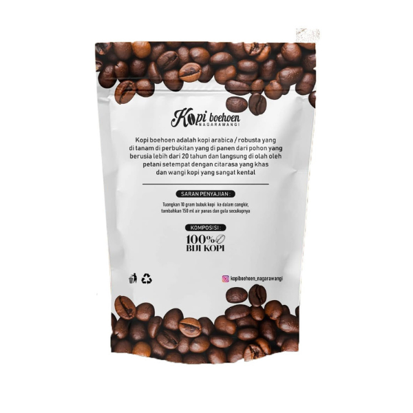 Kopi Boehoen adalah kopi arabica dan robusta yang di tanam di perbukitan gunung manglayang dari pohon yang berusia lebih dari 20 tahun dan langsung diolah oleh petani setempat dengan cita rasa yang khas dan wangi kopi yang sangat kental.