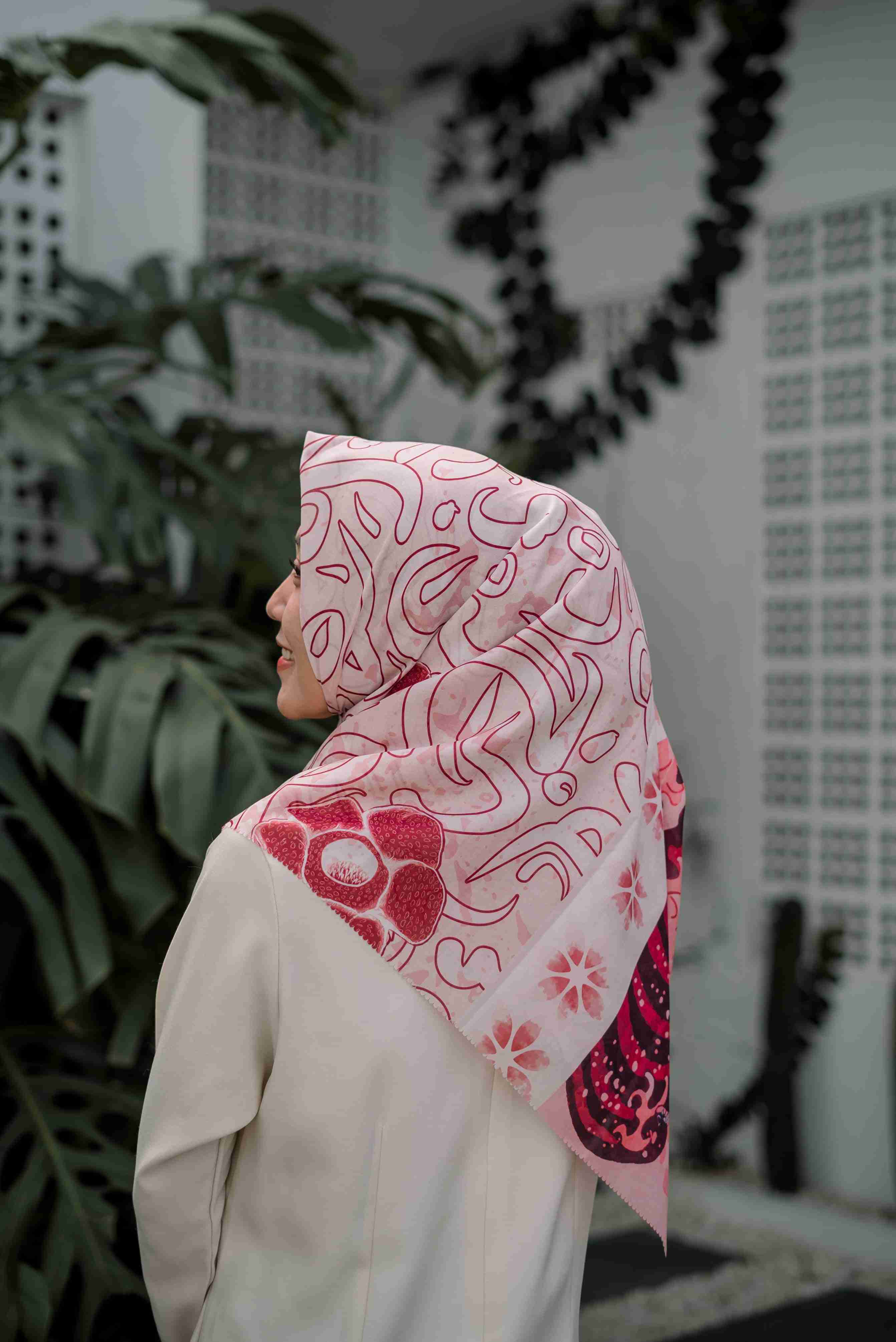 Makna Motif: Scarf dengan kombinasi motif Besurek dengan ombak Menggambarkan keberanian dan keindahan kota bengkulu