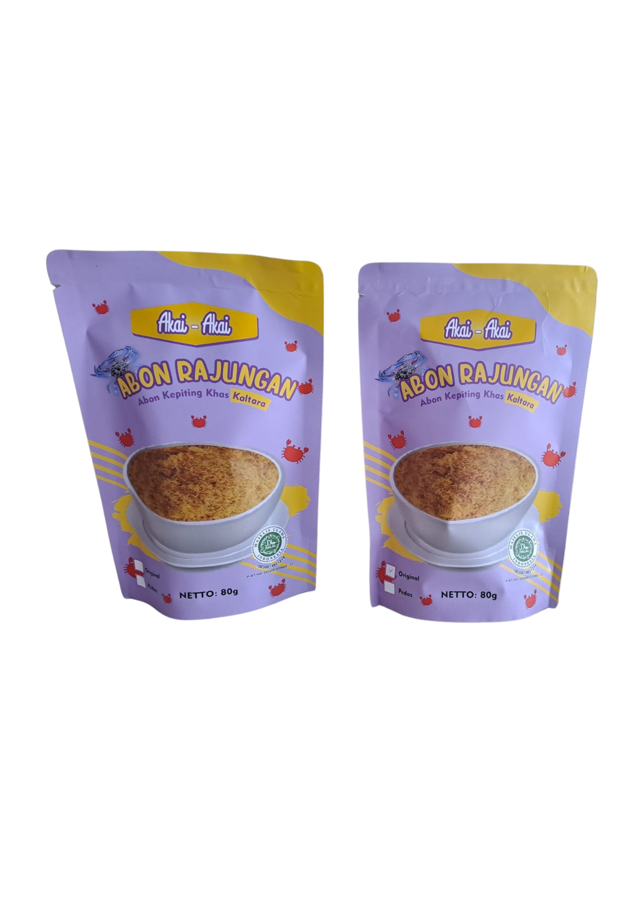 Abon Rajungan adalah produk olahan dari kepiting rajungan dengan kandungan daging kepiting lebih banyak, diolah dengan standar keamanan pangan yang terjaga dan tanpa bahan pengawet makanan. Bisa menjadi lauk makan atau cemilan saat bersantai dengan keluarga.