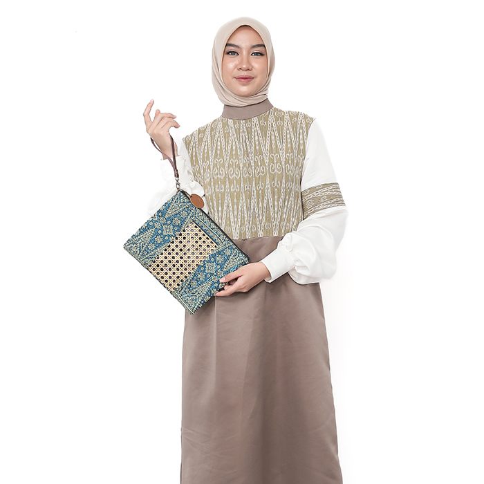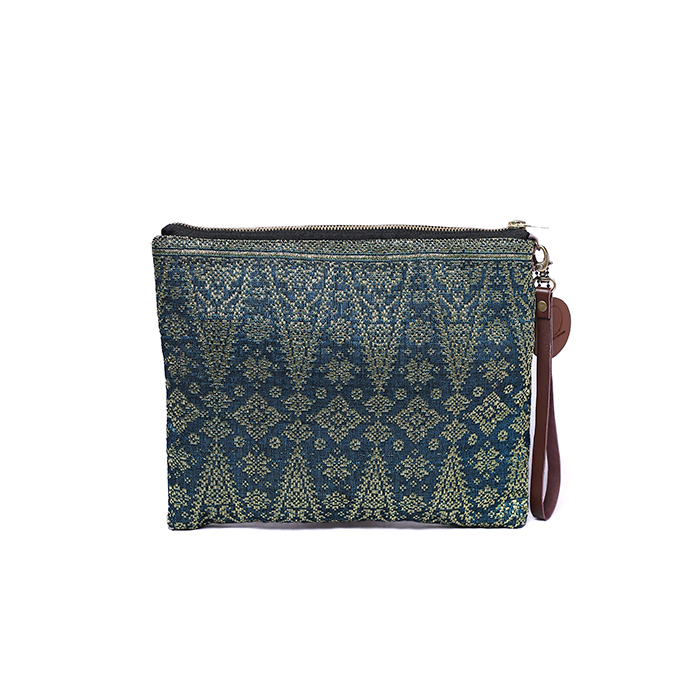 Pouch berbahan kain songket Sambas ini di kombinasikan dengan anyaman rotan sehingga membuat pouch ini terlihat lebih eksklusif.