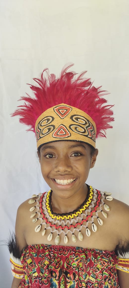 Mahkota Ukiran motif Papua bulu ayam polos